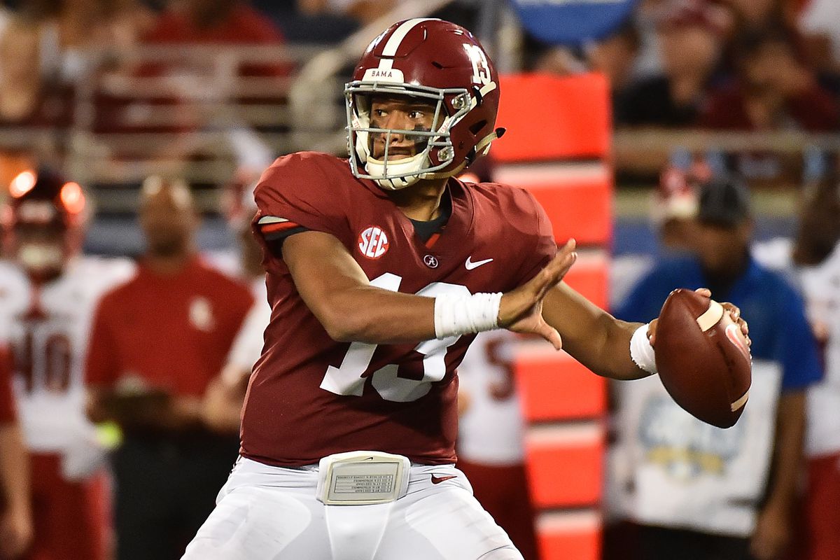 The quarterback controversy for the Alabama Crimson Tide appears to be lasting another week. Both Tua Tagovailoa and Jalen Hurts played in the Crimson Tide’s 51-14 victory over Louisville on Saturday. After the game, head coach Nick Saban told the media that both quarterbacks would continue to see action moving forward. Tagovailoa got the start for the Crimson Tide and quickly led them down the field for an opening series touchdown.